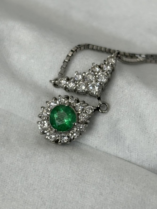 今回は東村山市の本町にお住まいのお客様よりPt850のエメラルドのネックレスをお買取り致しました。